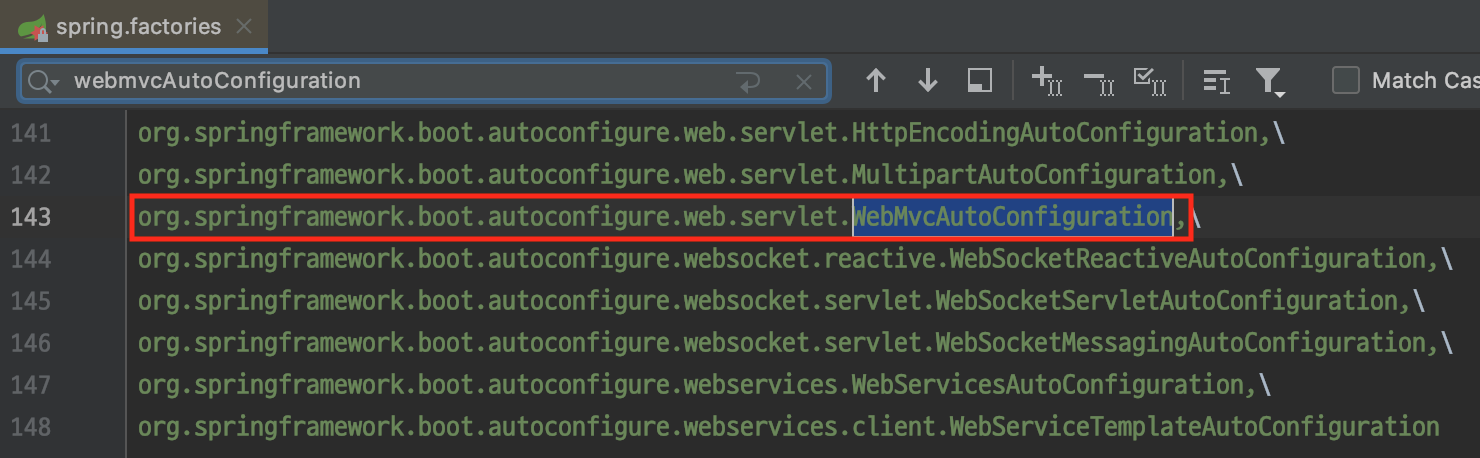 ๊ธฐ๋ณธ ์ค์ ์ spring-boot-autoconfigure ๋ชจ๋์ META-INF/spring.factories์ ์ ์๋์ด ์๋ค.