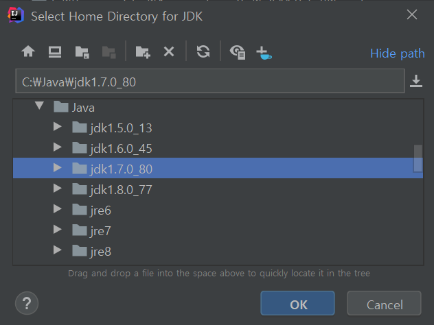 Platform Settings - SDKs์ ์ ํํ๋ฉด IntelliJ์ ๋ฑ๋ก๋ SDK ๋ชฉ๋ก์ด ๋ฌ๋ค. ์ด ์ค Gloal SDK๋ก ์ฌ์ฉํ SDK๋ฅผ ์ ํํ๊ณ [OK] ๋๋ [Apply]๋ฅผ ํด๋ฆญํ์ฌ ๋ง์น๋ค.